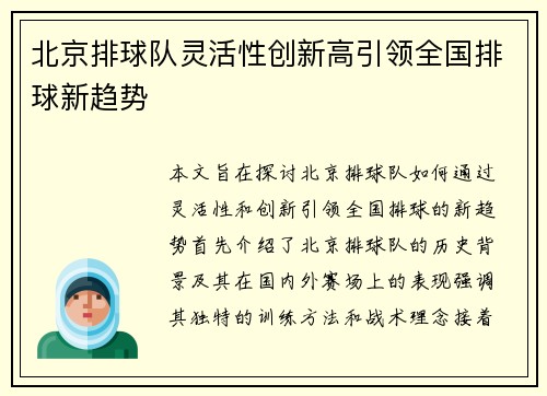 在最近的国际排球赛季中,广州排球队以99分的优异成绩领跑奥运会积分榜,展现出了强劲的实力和卓越的团队合作精神。本文将从四个方面对这一成就进行详细阐述,包括球队战绩分析、关键球员表现、教练团队策略以及未...