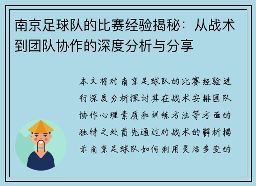 近年来,南京网球队的战术选择引发了广泛的讨论与争议,尤其是在一场关键比赛之后,球迷和教练之间的观点出现了明显分歧。本文将从四个方面对这一事件进行分析:首先,将探讨战术选择对比赛结果的重要性;其次,将分...